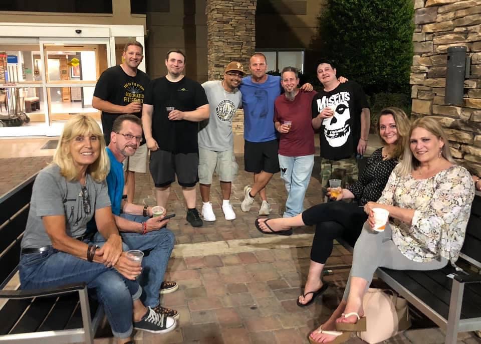 Louise Leister, Sean Smith, Mike Lebanik, Andy Youtz, Nestor Torres, Roy Minarai, Dave Paris, Me, Stacey Macey, and Trisha Walters relaxing after a long day at the US National Shohin Bonsai Exhibition.