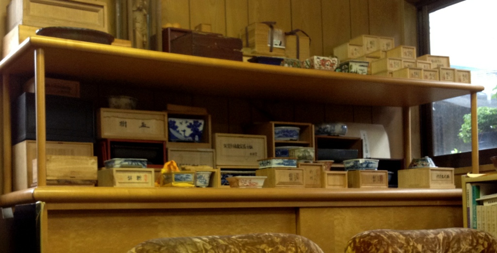Kobayashi San has one of the most impressive collections of antique and world class pottery available anywhere in Japan. Many of the containers on display and in the several sales areas are famous and published in exhibition albums(and those albums are always available nearby for you to take a look!).