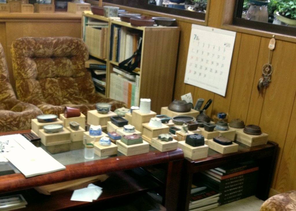 So…last of all, we have the Saitama area powerhouse of Shohin bonsai, Yorozuen. I’ve been dealing with Fukano San and purchasing from Yorozuen for a couple of years…and it showed. We’d barely say down to tea before Ayumu Fukano and his father had brought out milk crates full of Specimen quality Tofukuji pots. Between Matt and myself, it seems he knew our tastes!
