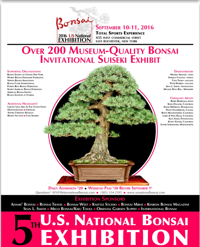 If your club isn’t able to have me for a lecture this year, come see me at the 5th National Bonsai Exhibition in Rochester in September, where I will be giving 2 lectures.